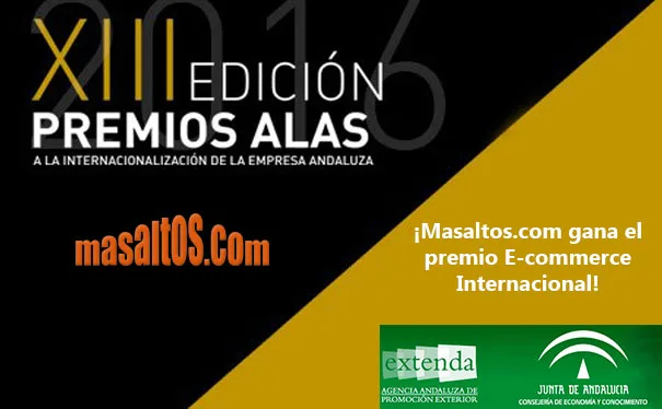 Este nuevo premio bajo la modalidad de “Ecommerce Internacional” nos reconoce nuestra actividad exportadora en Internet de manera planificada y organizada con más de 20 años a nuestras espaldas. Con un 95% de facturación online en el exterior el pasado año, en Masaltos.com hemos conseguido adaptarnos a los cambios en la red, siempre pendiente de nuestros clientes y poniendo a su alcance una plataforma web que atiende al publico en 8 idiomas diferentes y permite hacer una compra segura y eficaz.