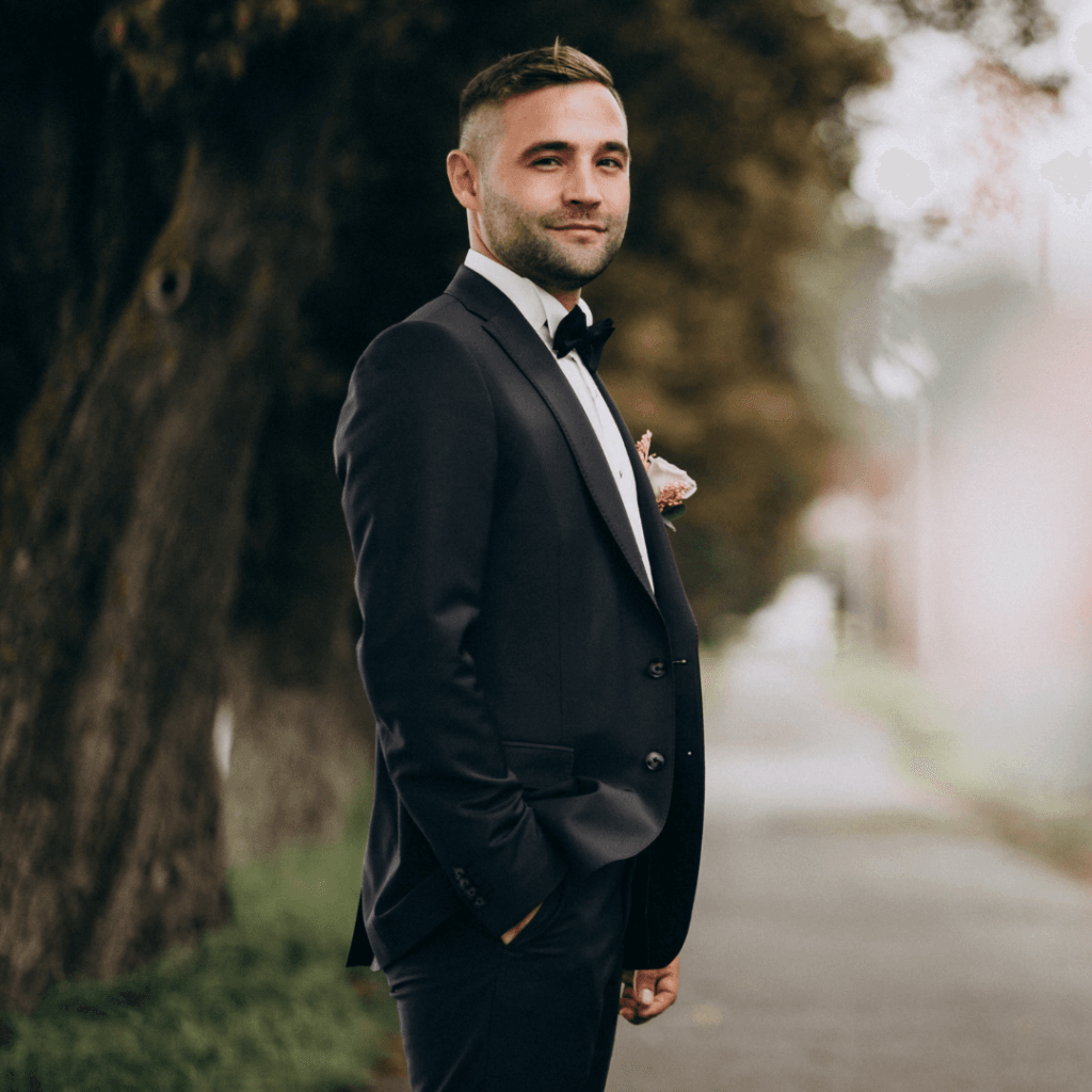 – Zapato negro + traje negro → Una combinación que nunca falla para bodas formales es combinar zapatos de cuero negro como nuestro modelo Gala con un traje oscuro. Crea una imagen que irradie sofisticación y seguridad.
