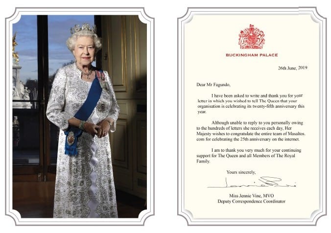 We are grateful to The Queen, as well as to the British Royal House for such a kind gesture to our entire team, which we form at Masaltos.com.