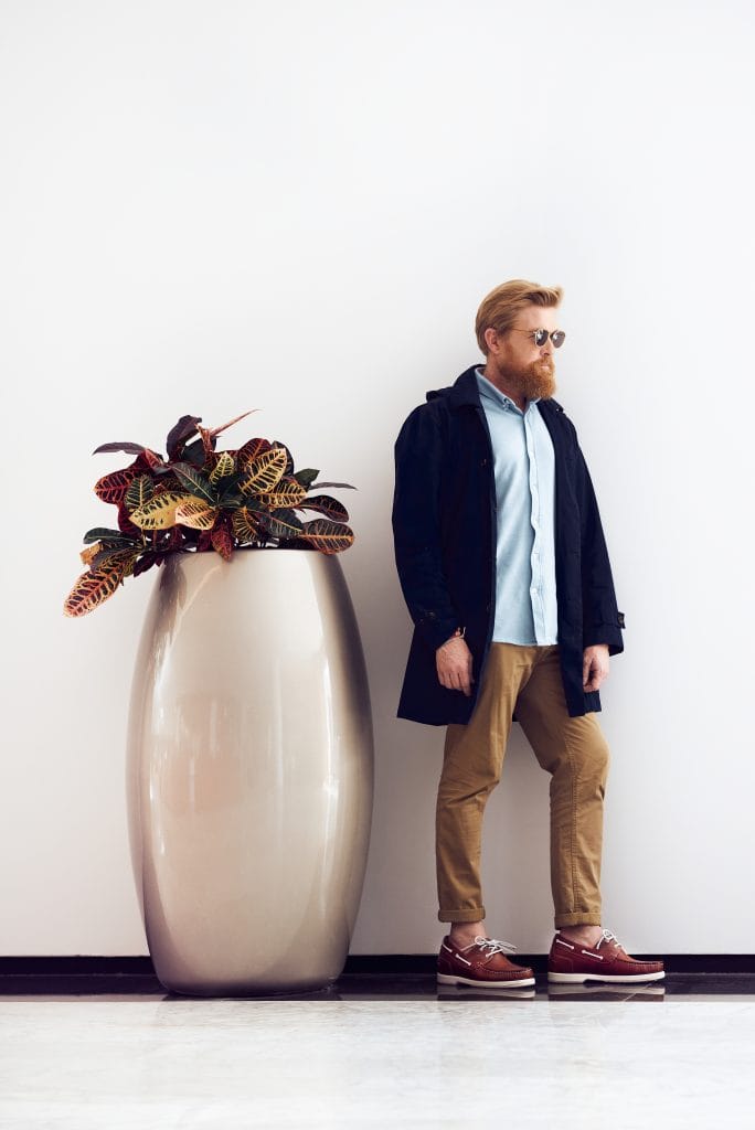 Another shoe that allowed Daniel to grow 7 cm in height was brown Portonovo. With a casual look and clearly summer-oriented shoes, Del Toro poses in this photograph in a superb and cheeky way, worthy of a movie star.