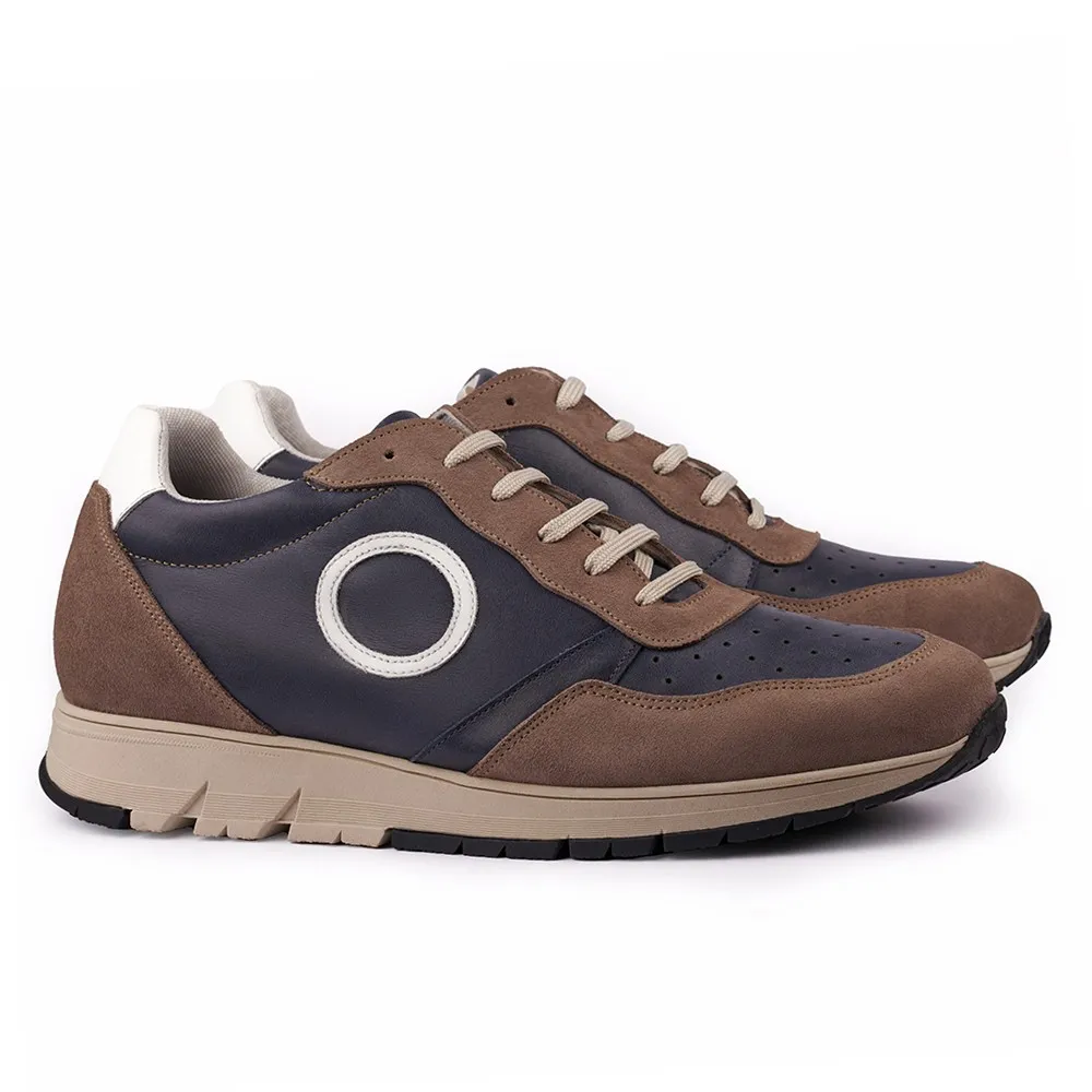 تتميز هذه الأحذية الرياضية بجزء خارجي من الجلد السويدي عالي الجودة، مما يضمن متانتها ومقاومتها للتآكل. تبرز صورة الخاتم من الخارج، وترمز إلى العلاقة بين الناس. الجزء الداخلي مبطن بالألياف الدقيقة، مما يوفر النعومة والراحة لقدميك. يعمل نظام نموه الداخلي على زيادة طول الرجل بمقدار 7 سم