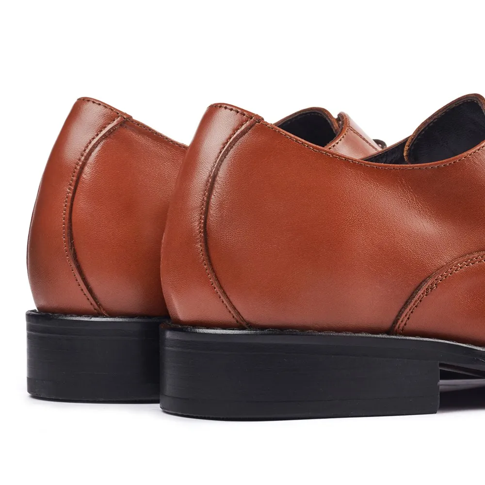 Beschreibung: Die erhöhten Derby Lederschuhe sind eine elegante und bequeme Wahl für diejenigen, die einen gepflegten Stil suchen, ohne auf Komfort verzichten zu müssen. Diese klassischen Schnürschuhe sind aus erstklassigem Kalbsleder außen und feinem Leder innen gefertigt. Außerdem verfügen sie über eine strapazierfähige Ledersohle und einen ultra-verstärkten Absatz, der Stabilität und Langlebigkeit bietet.