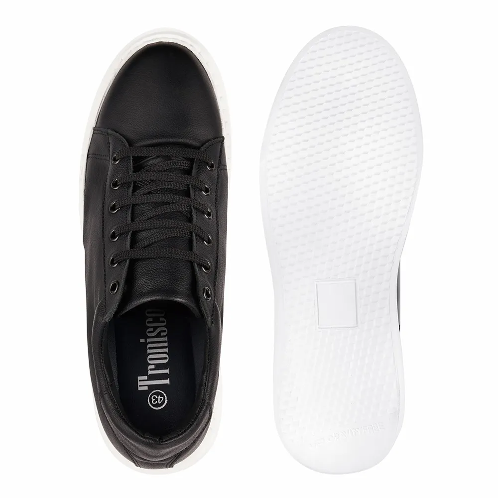 Die Sneakers Toscana Schwarz sind sehr vielseitig und können mit Anzughosen, Jeans, legerer Kleidung oder Sporthosen kombiniert werden, was Ihnen einen modernen und eleganten Stil ermöglicht. -