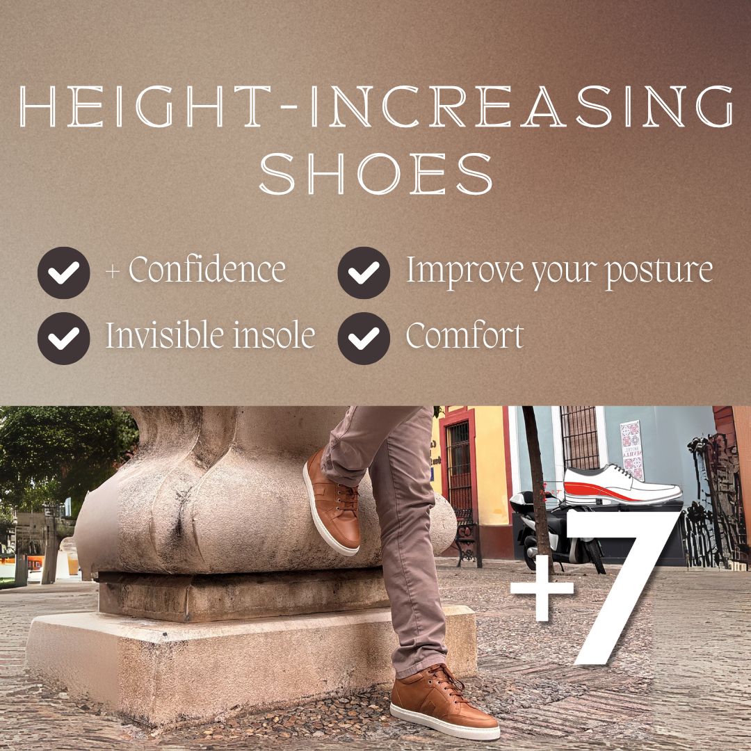 These shoes integrate 3 cm high wedges inside, ultralight and anatomically designed, which, combined with their outer heel, allow men to grow up to 7 cm more in height