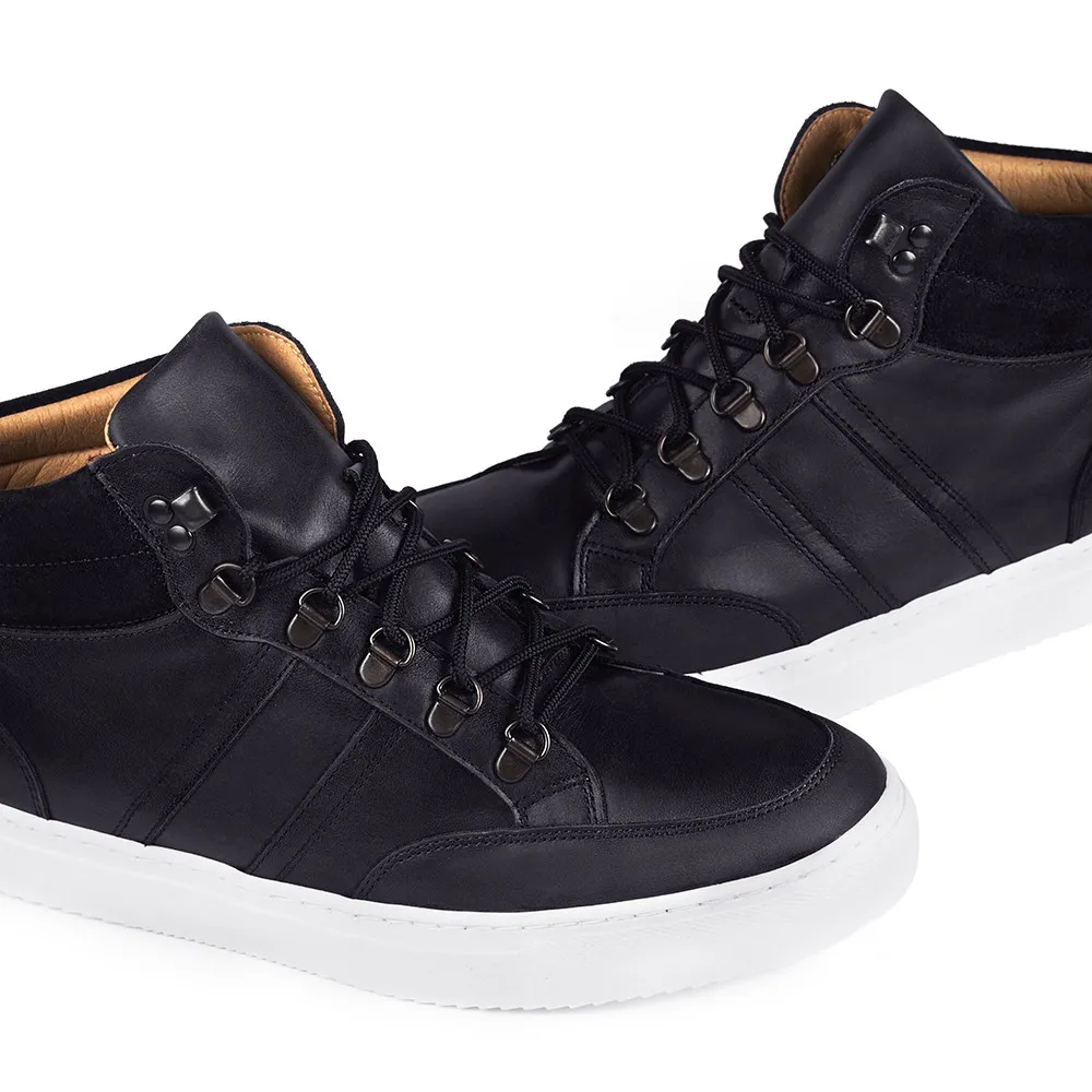 The black Padua Boots are made with a exterior of premium full-grain leather and a suede shaft, giving them a distinguished and durable appearance. -