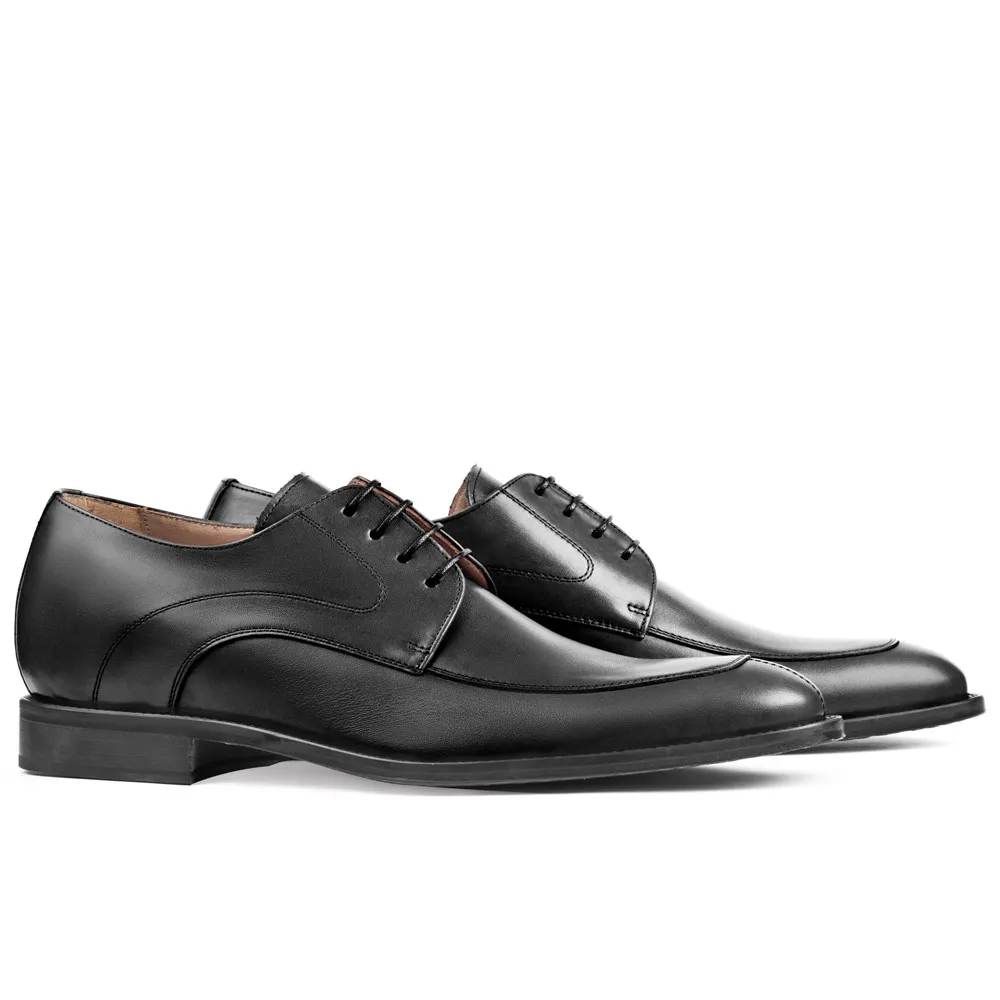 Descripción: Los Zapatos con alzas Tamigi negro son una elegante elección de calzado elevador de altura con un estilo italiano. El diseño de la pala no solo es estéticamente atractivo, sino que también transmite serenidad y distinción. Estos zapatos con alzas están confeccionados con piel de ternera tafilete de alta calidad en su exterior y están totalmente forrados en piel fina en el interior, brindando comodidad y durabilidad.