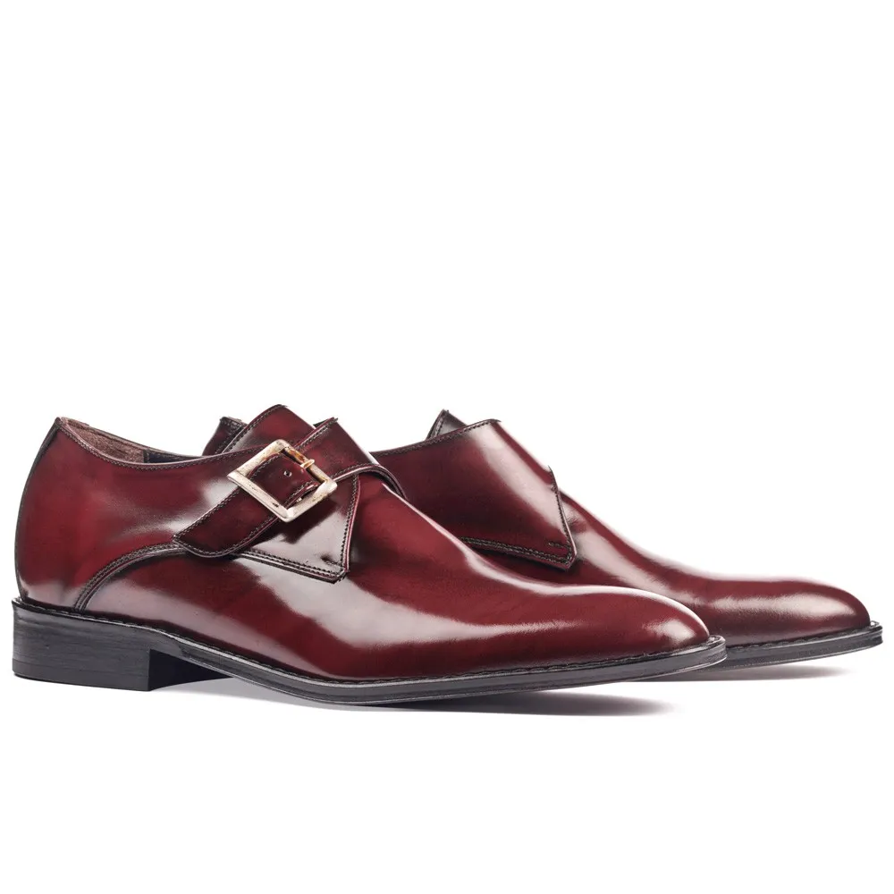 Descripción: El modelo Bari es un zapato de vestir suave al tacto con hebilla lateral que le da un toque de elegancia y distinción. Estos zapatos con alzas de diseño italiano son ideales para aumentar la estatura en 7 centímetros. Con exterior de piel box-calf en un hermoso color burdeos y un interior totalmente forrado, combinan estilo y comodidad de manera única. Su suela de cuero con tacón ultra reforzado garantiza durabilidad y resistencia. Son especialmente recomendables para lucir con pantalón de vestir, de pinza y con pantalón chino, adaptándose a diversas ocasiones.