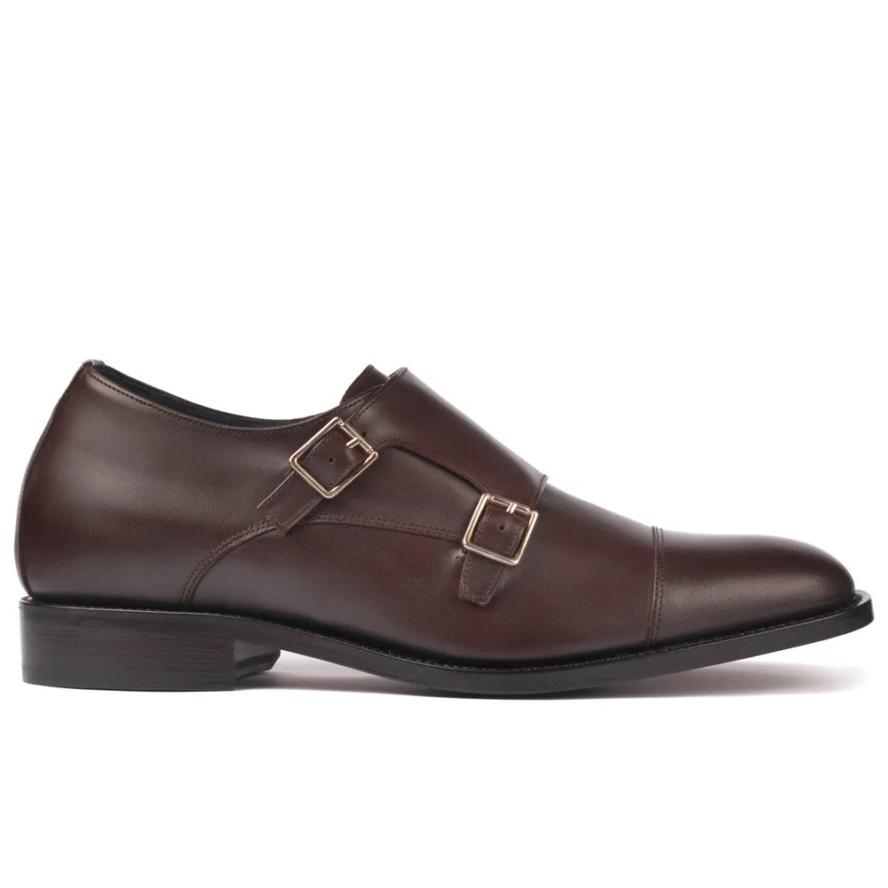 Descripción: Los Zapatos con Alzas Bristol Marrón son un elegante par de zapatos con doble hebilla, conocido como doble monk strap, diseñado y fabricados según la alta zapatería italiana. Están hechos a mano por los mejores artesanos zapateros, utilizando la técnica de doble cosido Goodyear Welted, lo que garantiza su durabilidad y calidad.