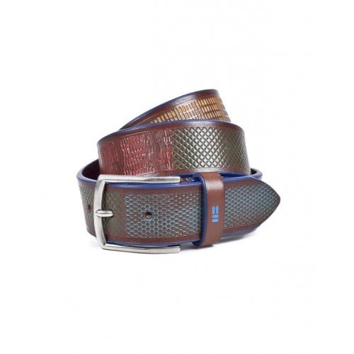 Descrizione: La cintura per jeans da uomo Luciano in marrone presenta una combinazione di disegni con motivi geometrici che combina i colori verde, blu, giallo e rosso. Questi motivi sono marcati sulla cintura sportiva con una combinazione di contrasto di colore e sfocatura.