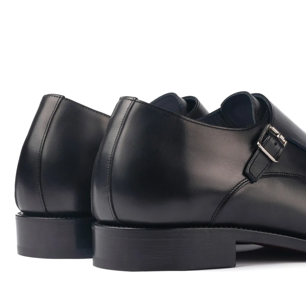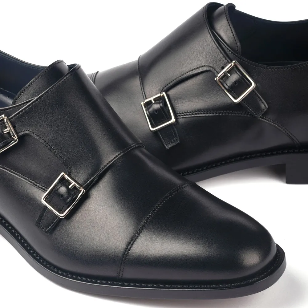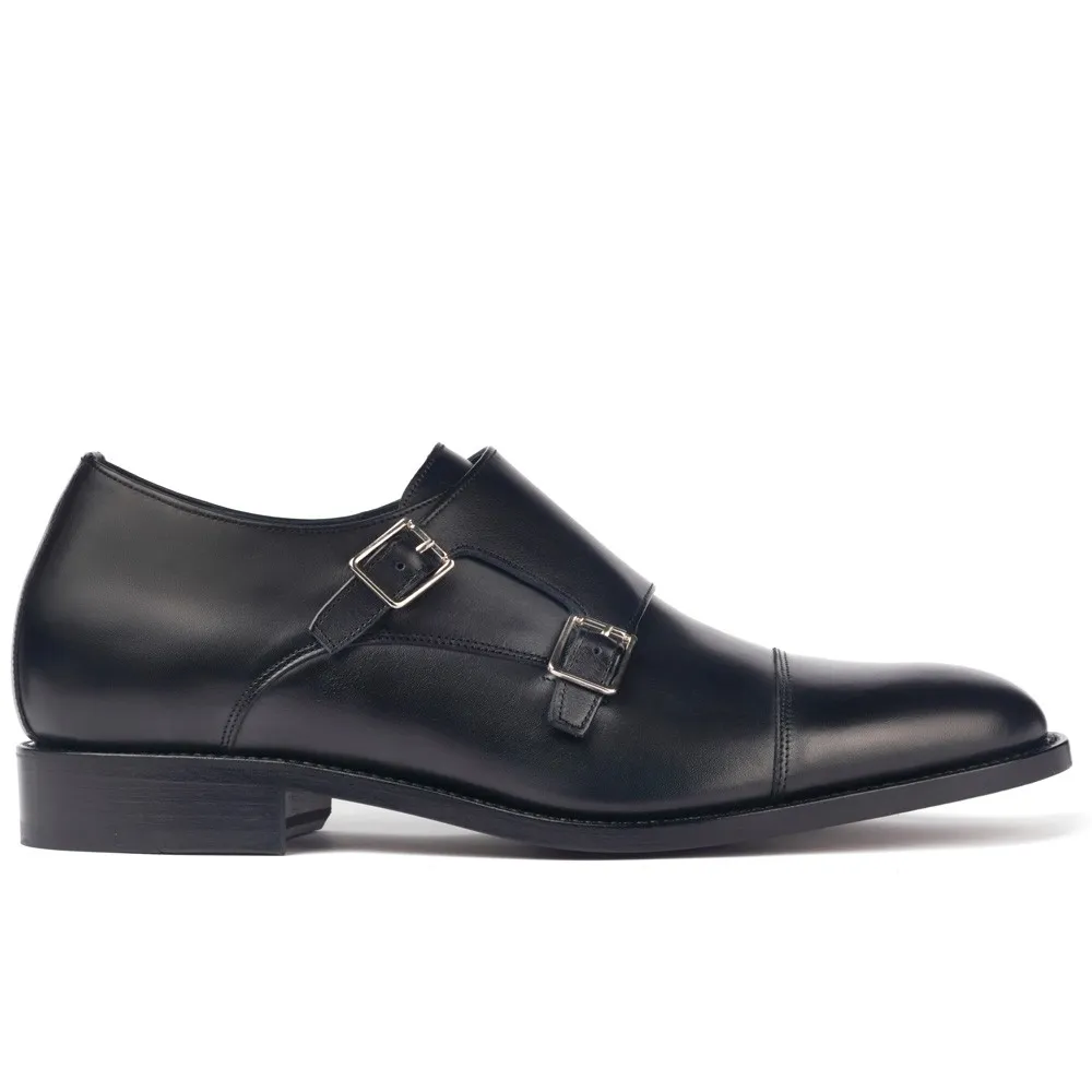 Descrizione: Queste eleganti scarpe con rialzo Bristol nere sono una creazione del rinomato calzolaio italiano. Con un design a doppia fibbia noto come doppio monk strap, queste scarpe non solo forniscono altezza, ma sono anche un accessorio di moda che completa vari stili di abbigliamento. Sono realizzate a mano da abili artigiani calzolai utilizzando la tecnica di cucitura doppia Goodyear Welted, garantendo così la loro durata e qualità eccezionale.