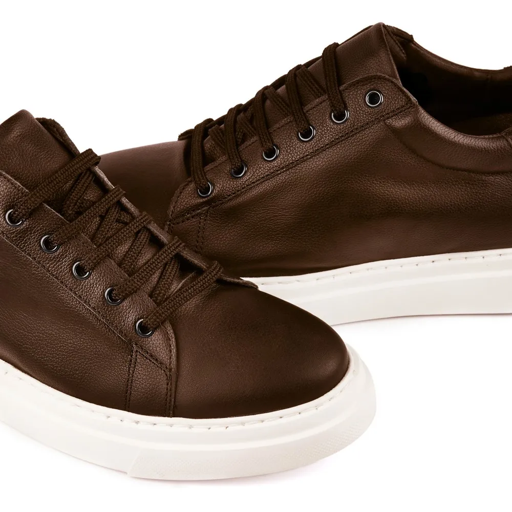 Caratteristiche: Le sneakers Toscana marrone sono realizzate con pelle fiore di prima qualità e la loro suola è realizzata in gomma EVA ultraleggera, rendendo queste scarpe rialzanti estremamente comode e leggere.