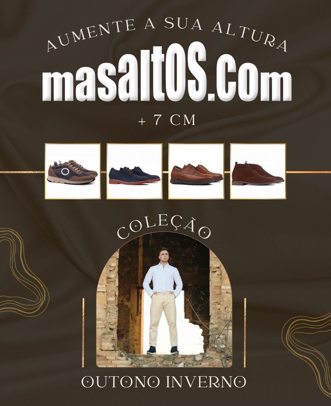 Os sapatos elevadores Masaltos são sapatos de aspecto convencional que guardam um pequeno grande segredo, porque foram concebidos para aumentar a sua altura. Estes sapatos integram no interior cunhas de 3 cm de altura, ultraleves e anatomicamente desenhadas, que, combinadas com o salto exterior, permitem ao homem crescer até 7 cm mais de altura.