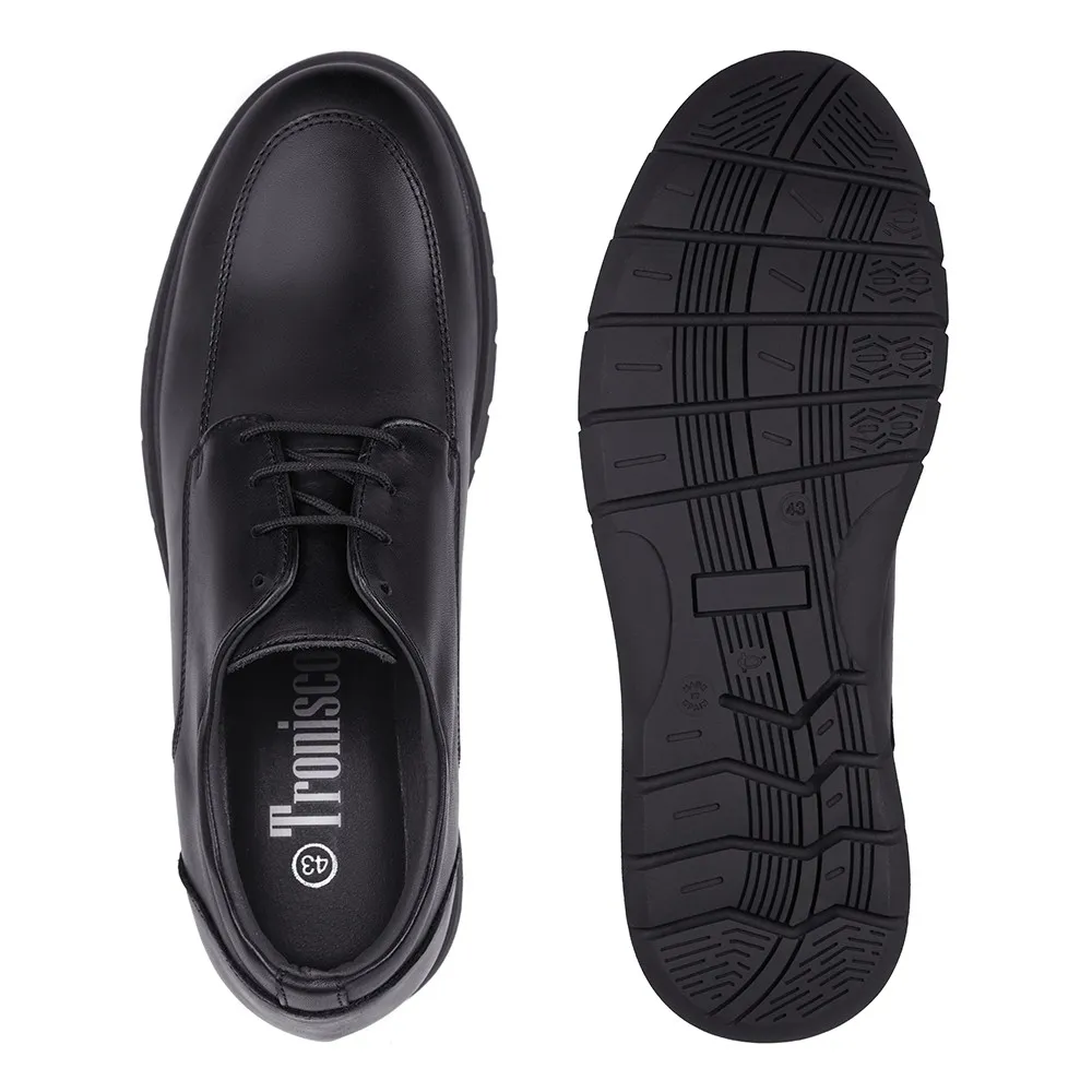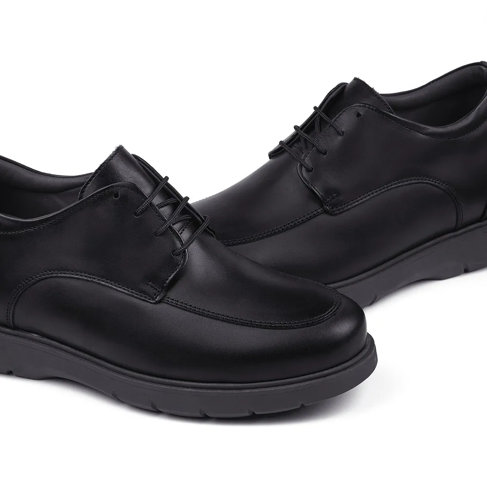 Descrição: Os sapatos Messina preto com atacadores são um par de sapatos estilosos projetados para combinar estilo e conforto. Estes sapatos têm aumentos de altura para aumentar a altura de forma discreta e confortável. O exterior em couro de alta qualidade proporciona durabilidade e um visual sofisticado, enquanto o design sem máscara acrescenta um toque moderno.