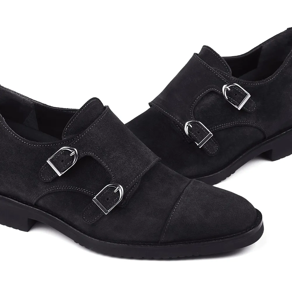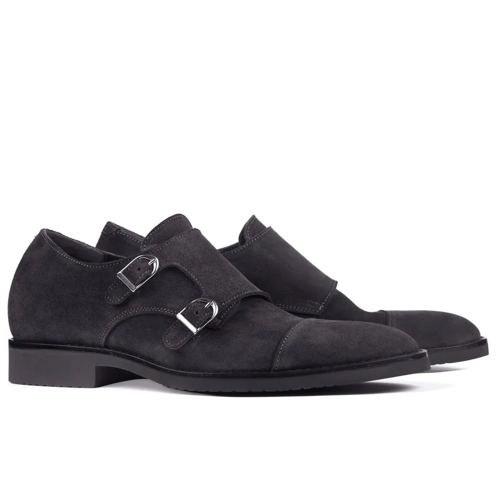 Descrição: Os Sapatos com Elevador Portofino em preto são um elegante e clássico design italiano que não apenas proporciona estilo, mas também um aumento de 7 cm na altura dos homens. Eles são feitos de couro camurça-hidrofugado de alta qualidade e apresentam um exclusivo duplo fecho de fivela do tipo monk strap que adiciona uma elegância única ao calçado. Seu design trendy os torna versáteis para uso durante todo o ano, combinando perfeitamente com uma variedade de conjuntos, desde jeans até calças sociais.