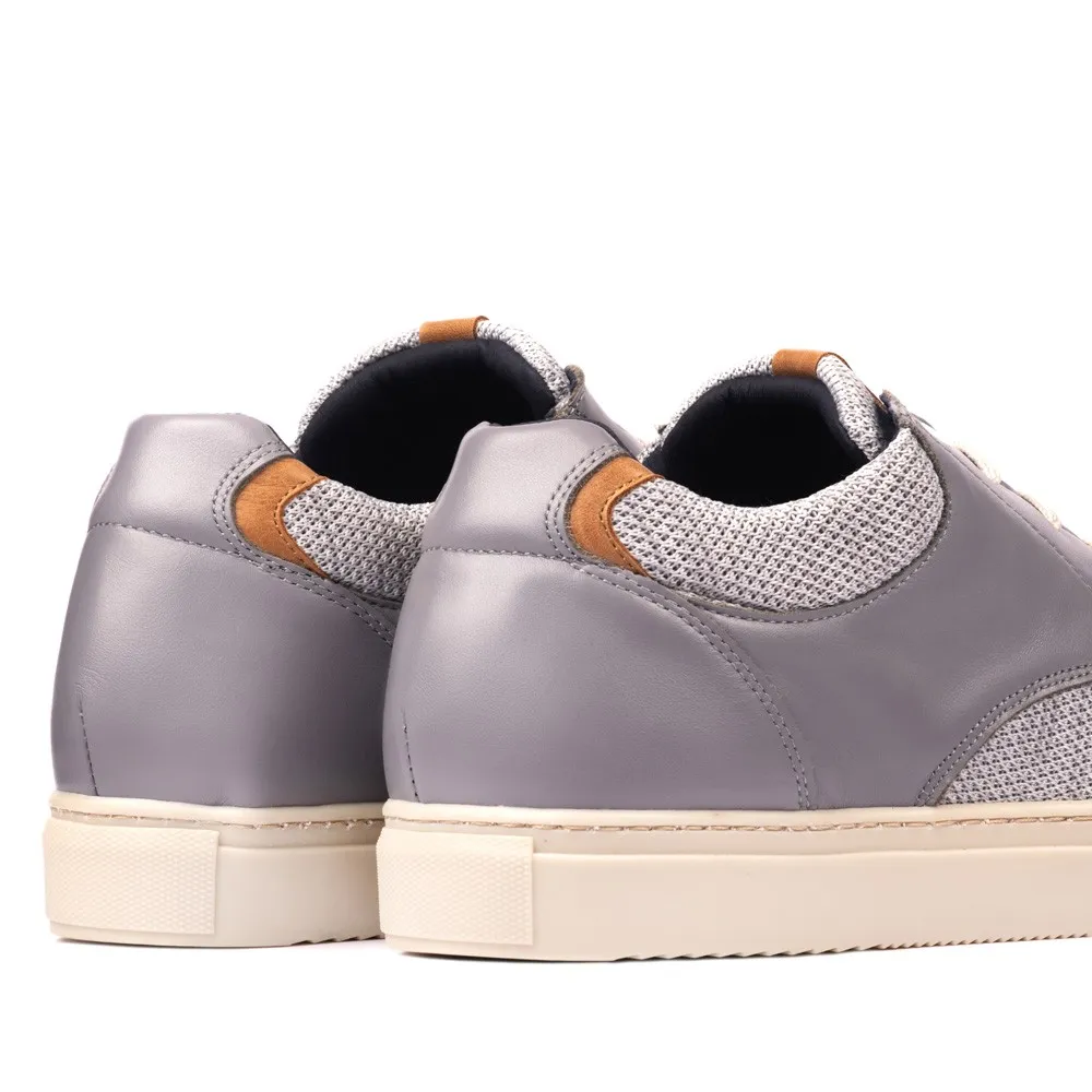 Descrição: As Sapatilhas Esportivas Pesaro em cinza são uma excelente combinação de conforto e estilo. São projetadas para proporcionar uma aparência moderna e elevar você levemente devido às suas elevações incorporadas. Esses tênis são ideais tanto para uso diário quanto para ocasiões especiais, como jantares ou passeios. Seu exterior em couro de flor premium e têxtil não apenas garante durabilidade, mas também se adapta a diferentes trajes, complementando qualquer estilo com elegância.
