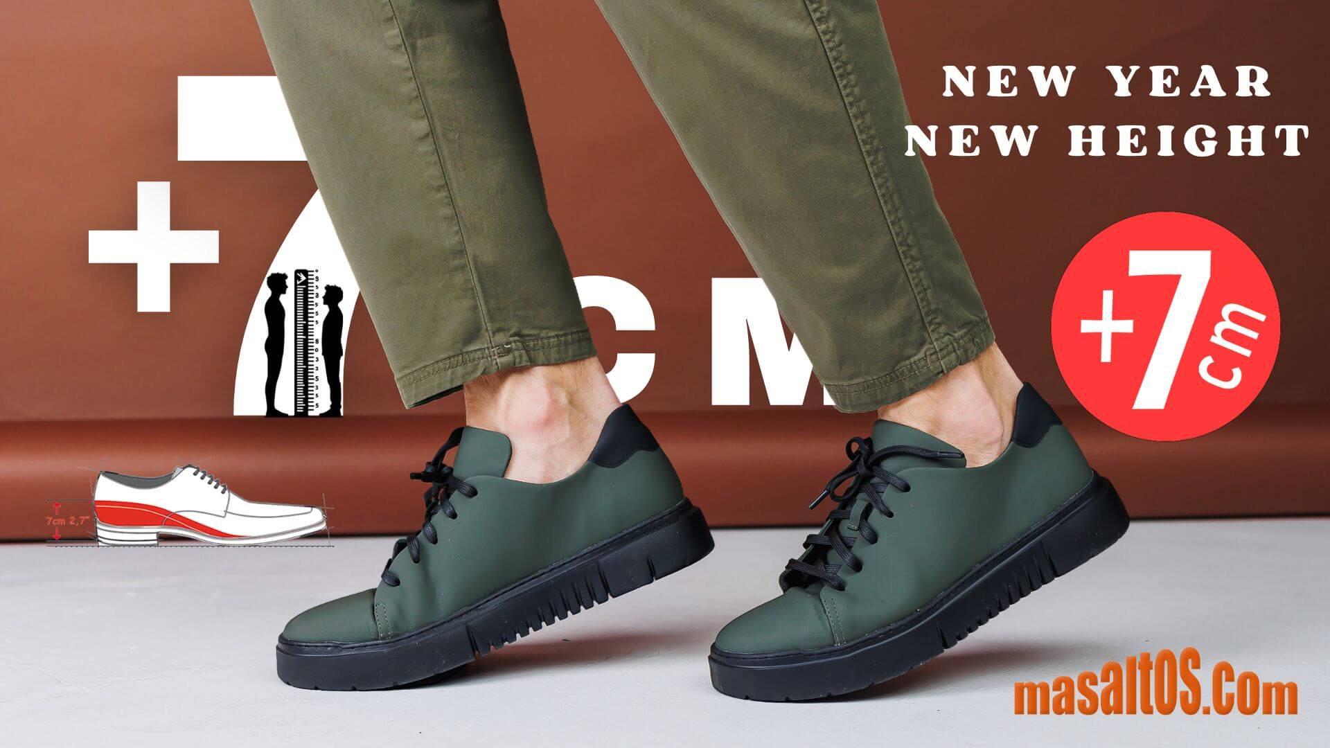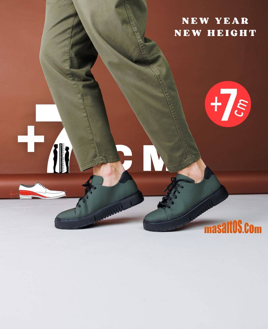 Masaltos — это обувь, которая несмотря на свой внешне классический вид, обладает секретом увеличения роста. Она скрывает в себе сверхлегкую, анатомическую стельку толщиной 3 см, которая в сочетание с каблуком, позволяет мужчине увеличить рост до 7 см.
