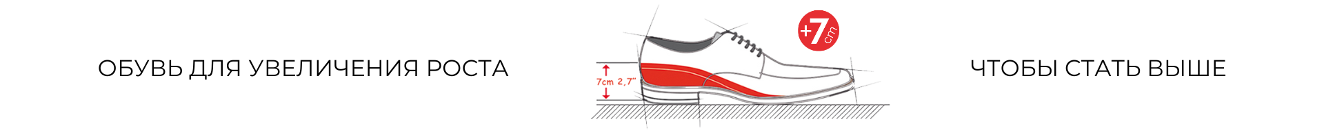 Она скрывает в себе сверхлегкую, анатомическую стельку толщиной 3 см, которая в сочетание с каблуком, позволяет мужчине увеличить рост до 7 см.